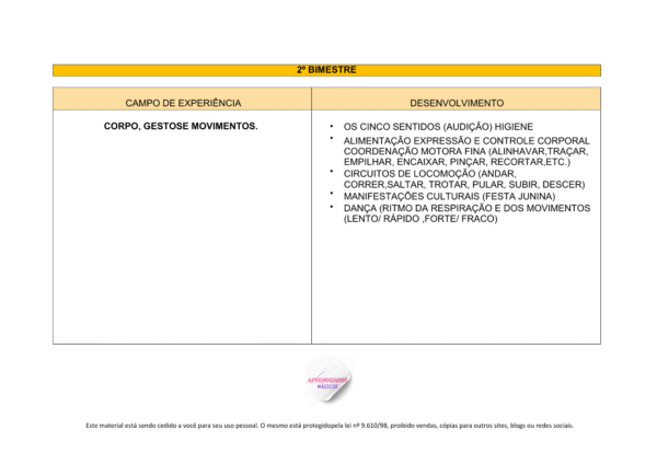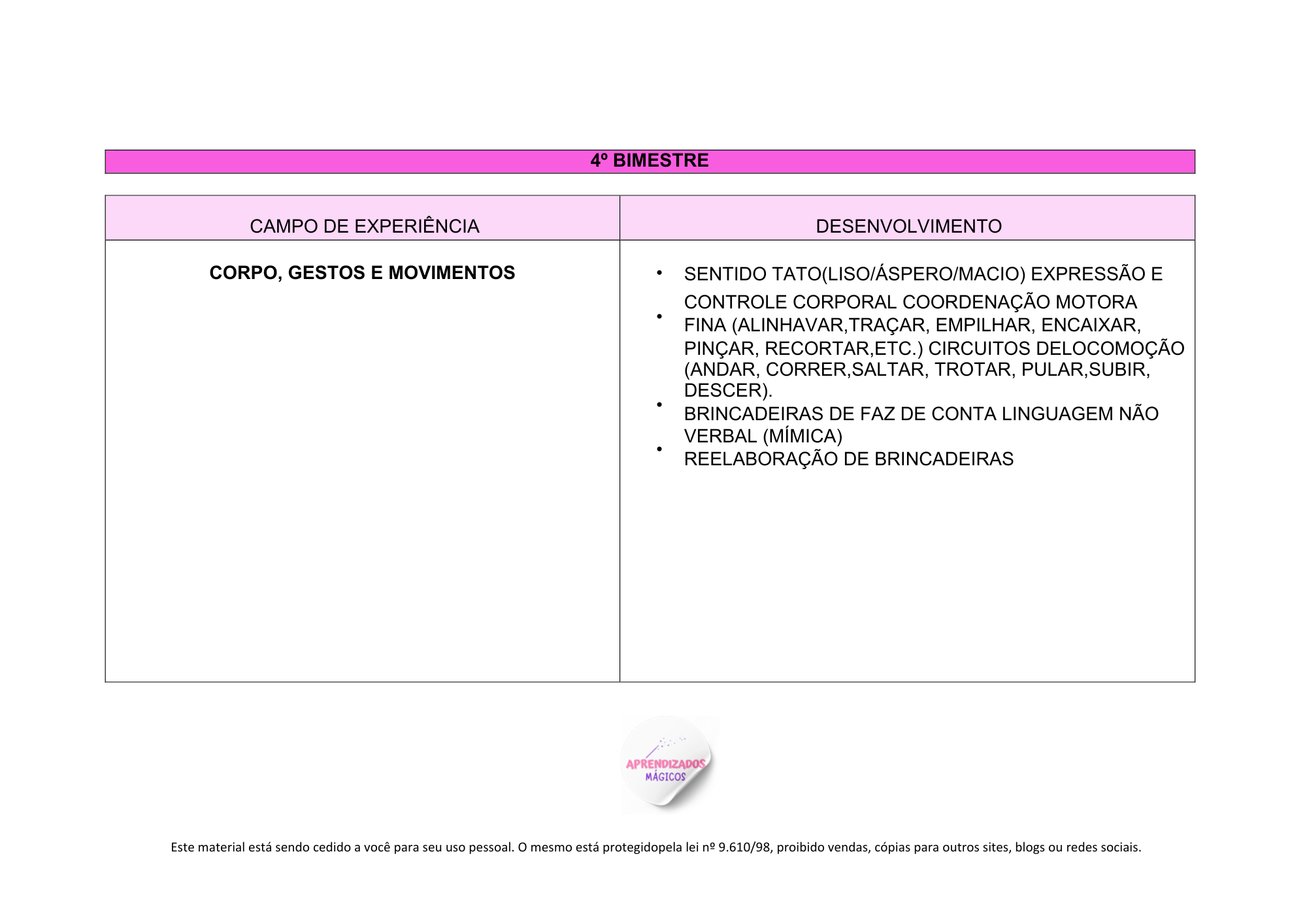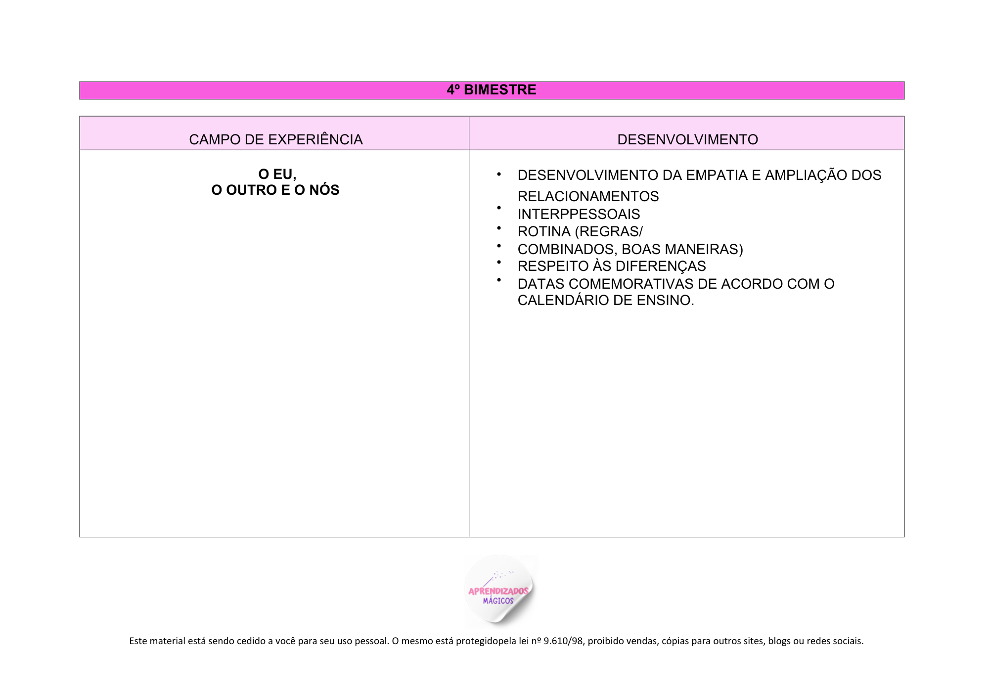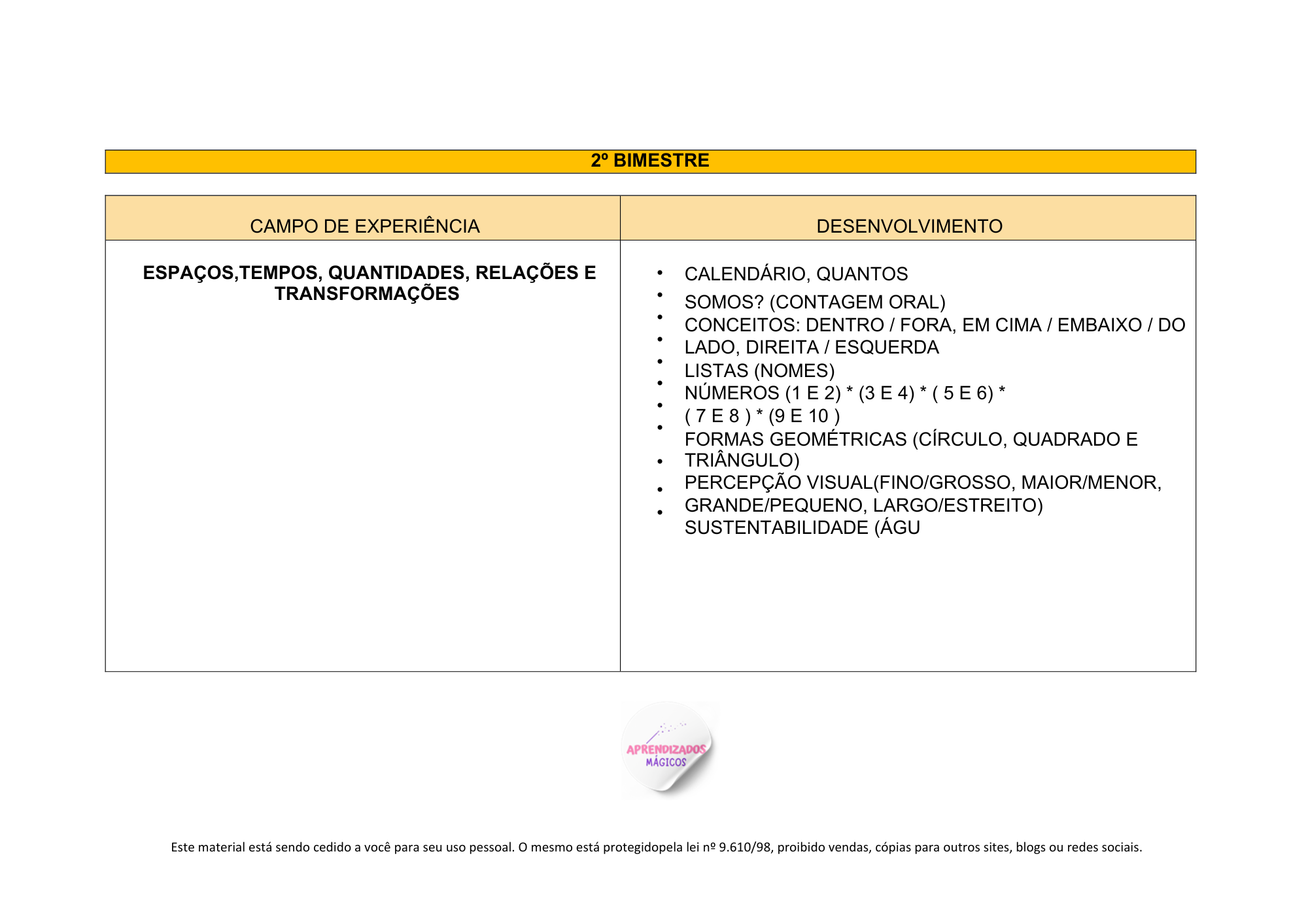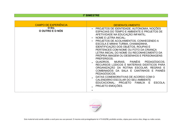 Organizado do 1º ao 4º bimestre, o material contempla todos os campos de experiências, com sugestões de atividades e avaliações que estimulam o aprendizado de forma lúdica, afetiva e significativa. 💕