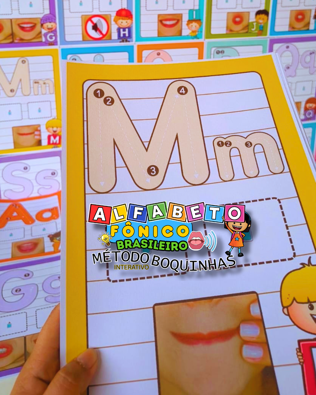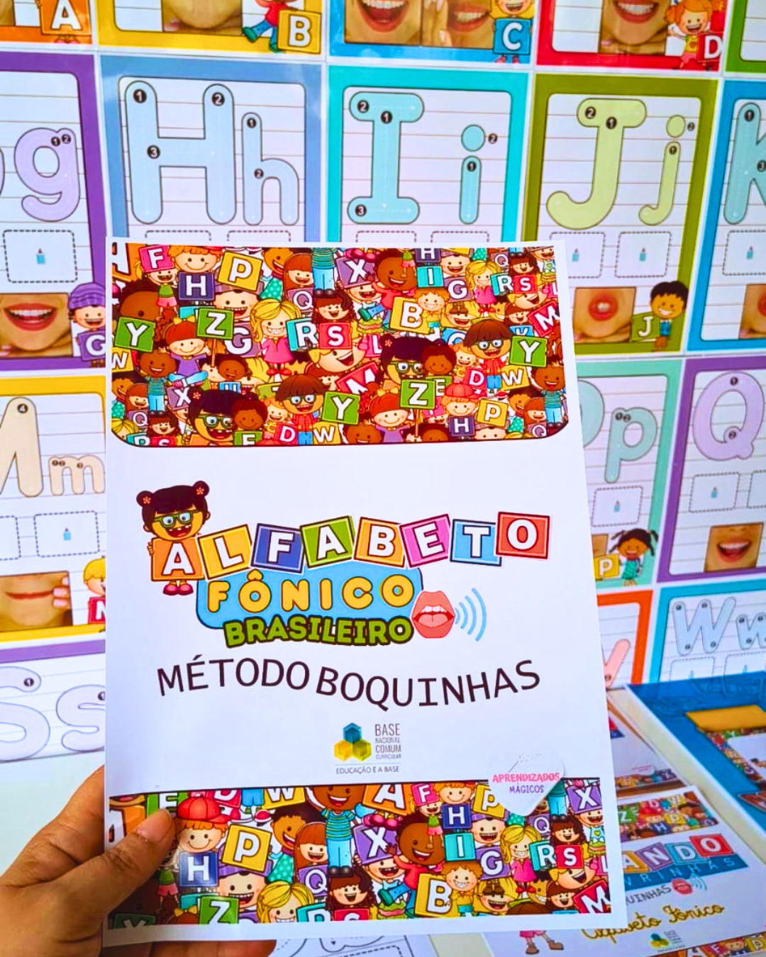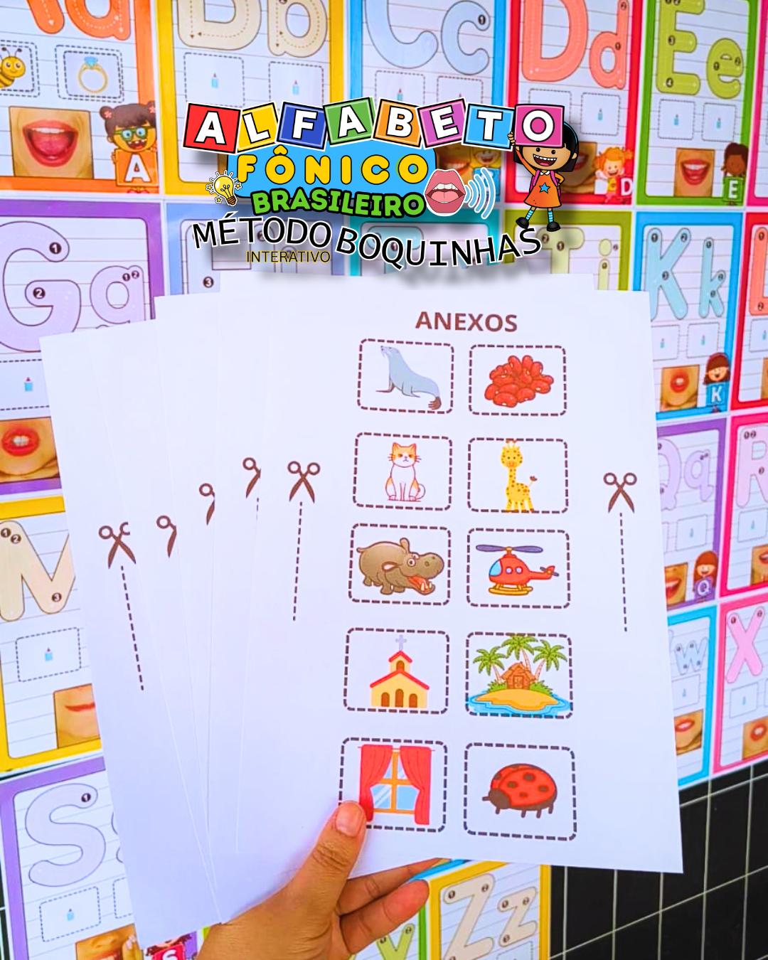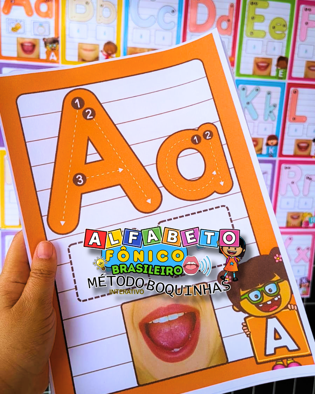 Este material de alfabetização fônica combina alfabeto de parede com apostila de apoio, permitindo que a criança associe som, imagem e letra de forma contínua, favorecendo a compreensão da leitura desde as etapas iniciais.