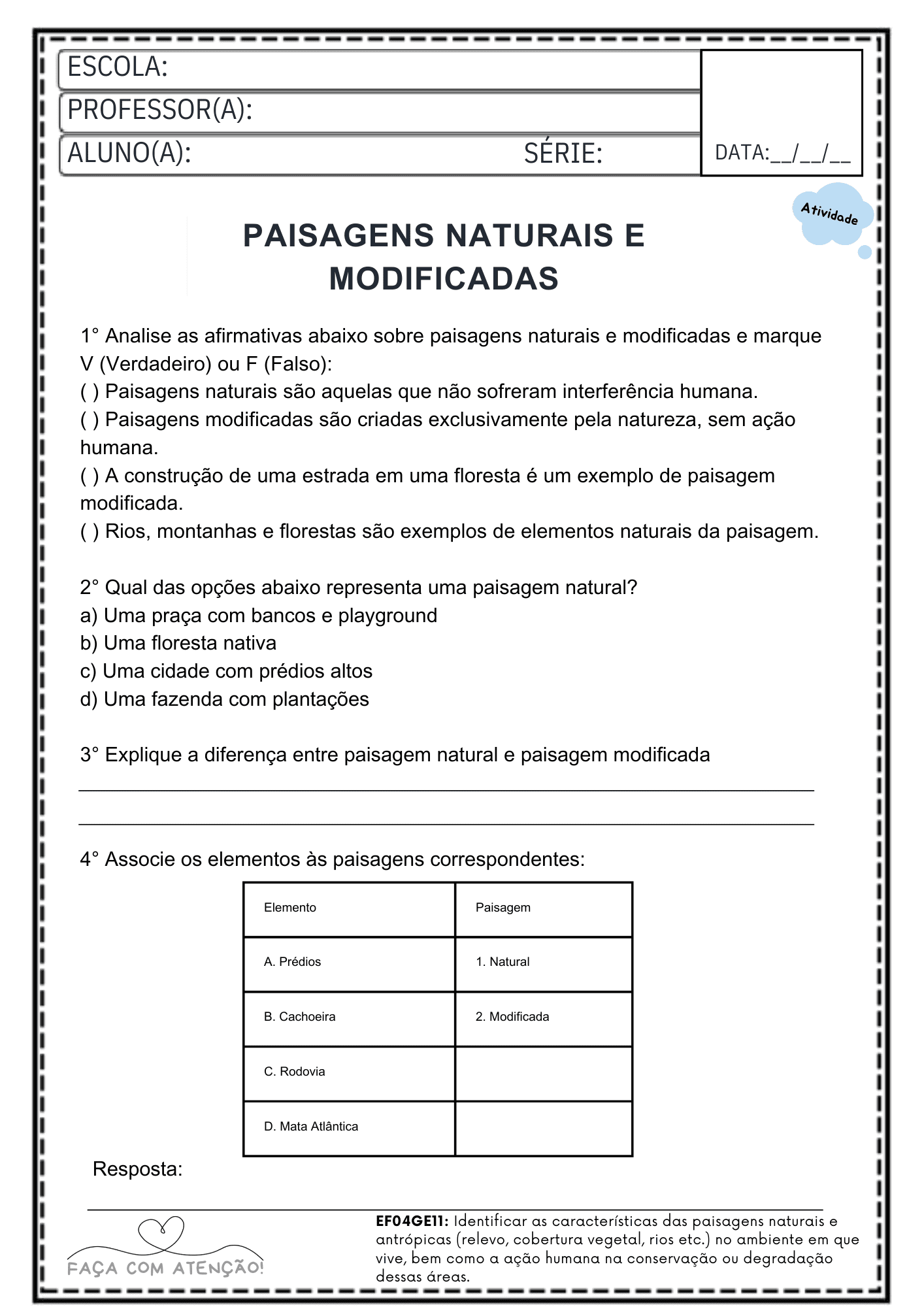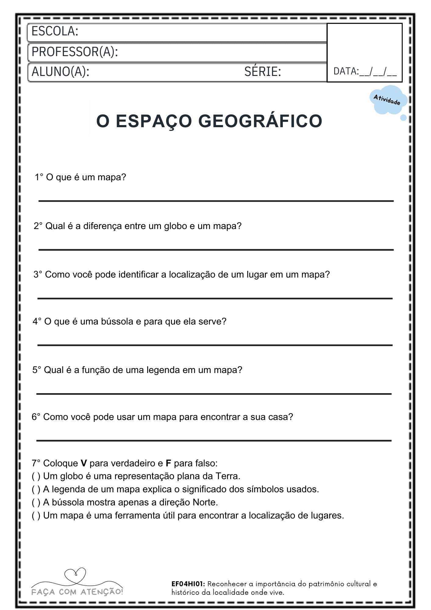 Apostila de Geografia 4º Ano Ensino Fundamental com BNCC 2026 – Espaço Geográfico, Território e Sustentabilidade (40 Páginas + Gabarito)