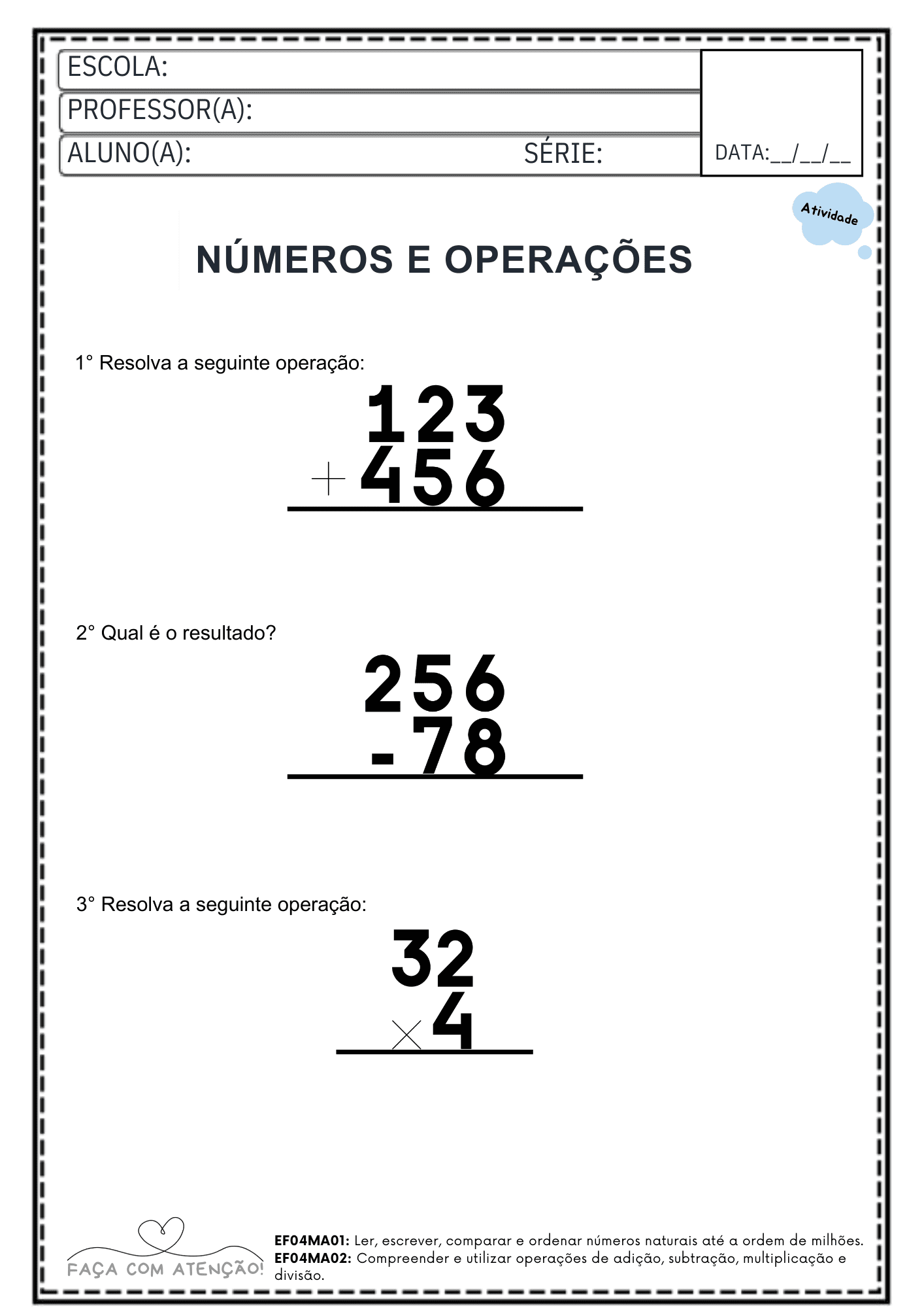 Material completo de Matemática para o 4º Ano do Ensino Fundamental, com atividades organizadas conforme as habilidades da BNCC atualizada e gabarito incluso.