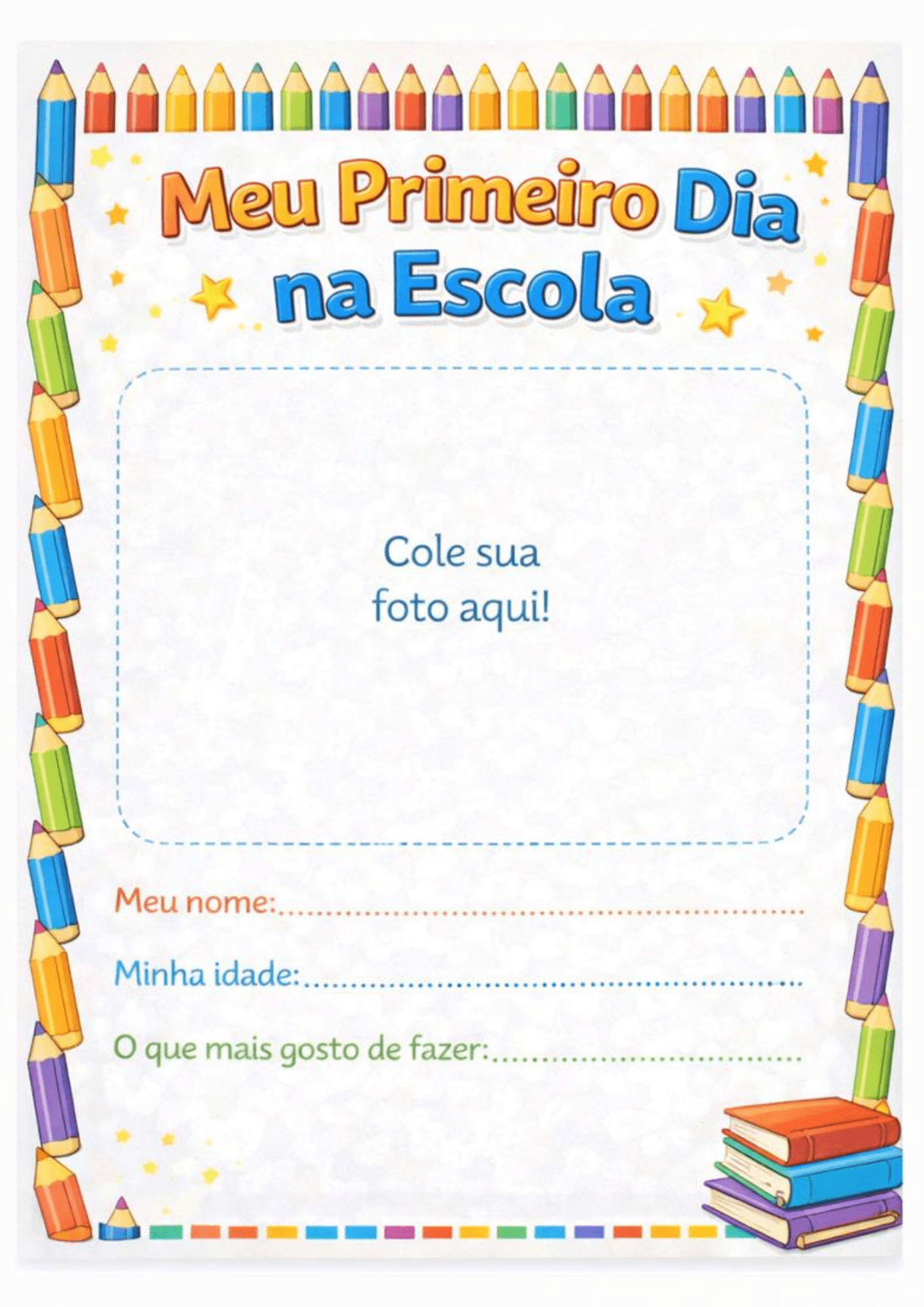 Meu 1º dia de aula (com espaço para foto)