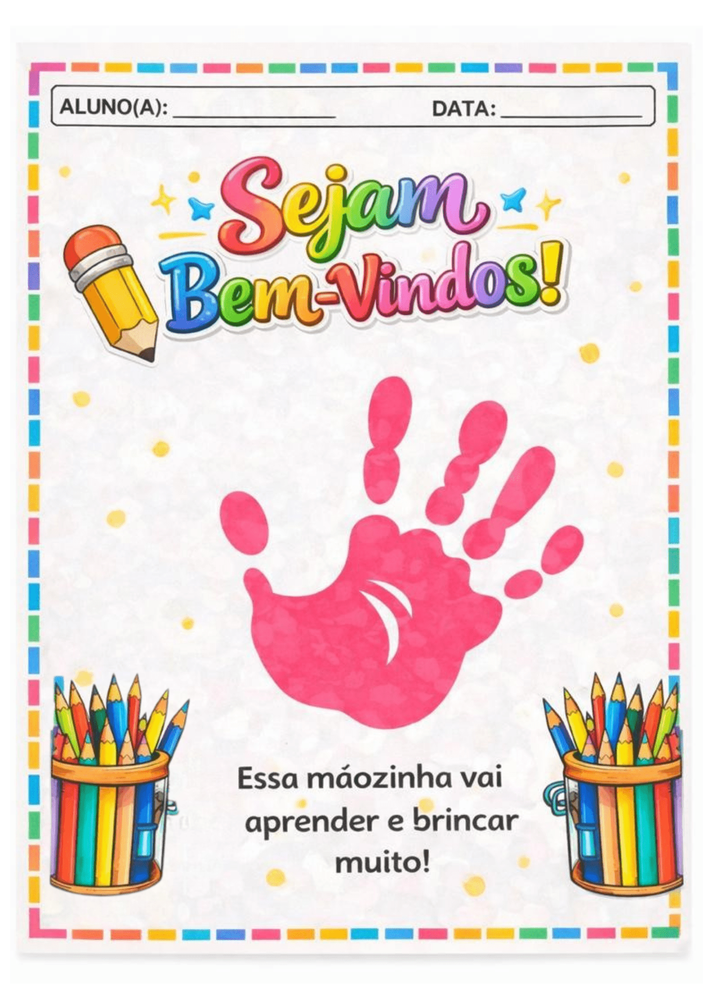 Bem-vindo: atividade para pintar a mãozinha e colar na folha