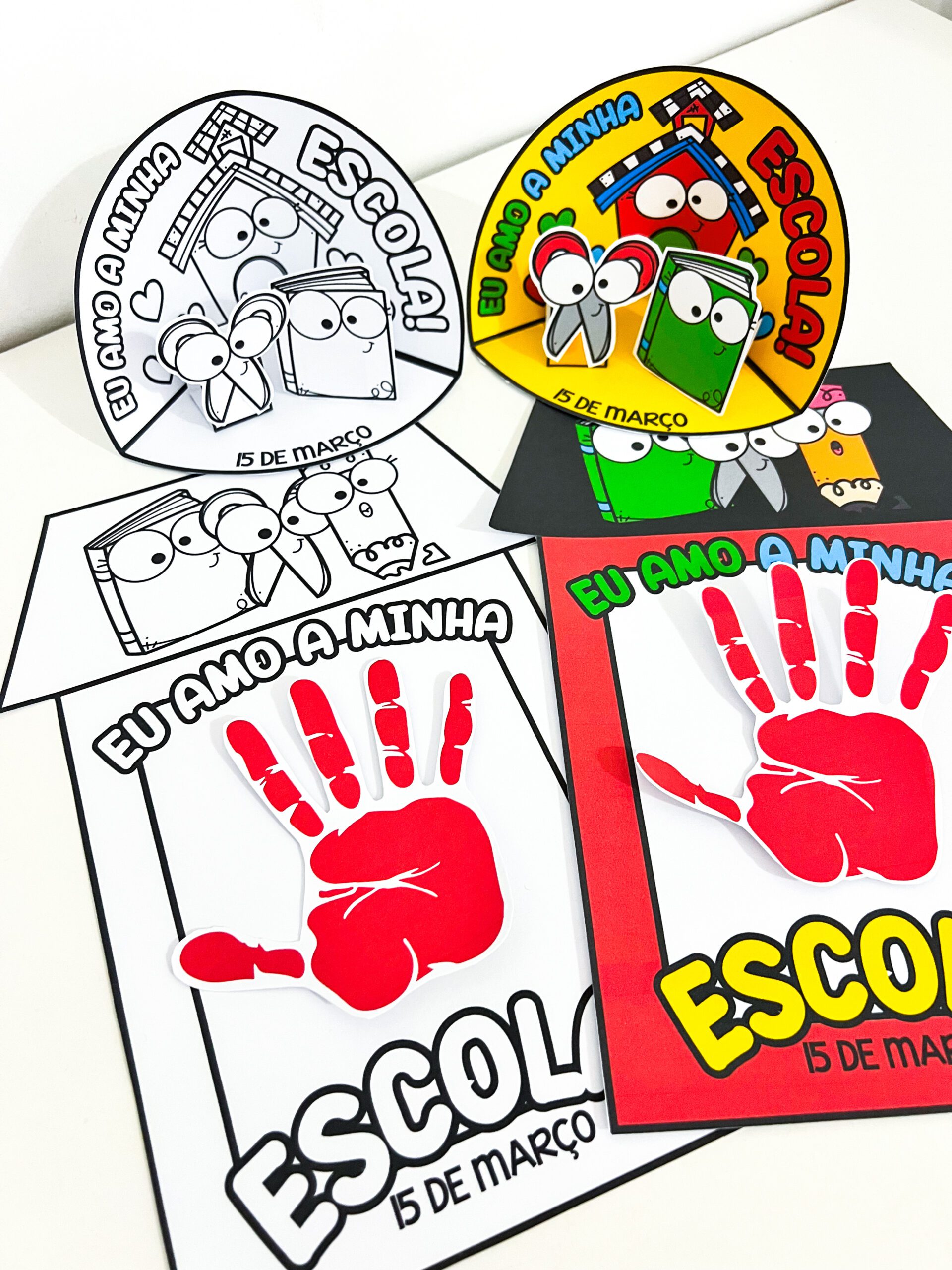 Atividades Dia da Escola – Cenário 3D e Moldura da Mãozinha | Material Pedagógico para Educação Infantil