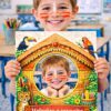 - Painel interativo (4 folhas A4) com recorte para o rosto do aluno