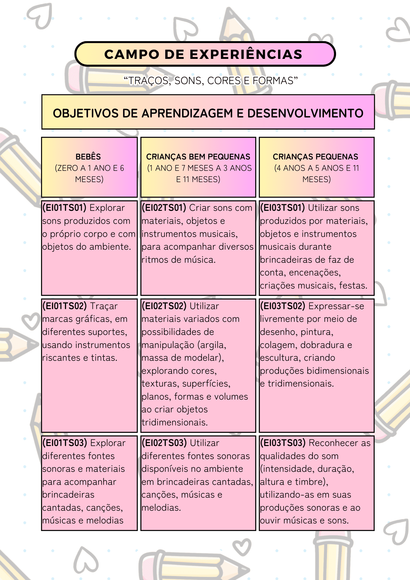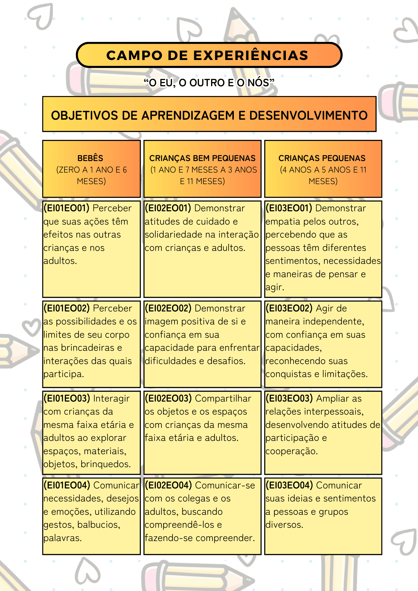 O Diário de Bordo foi estruturado com base na Base Nacional Comum Curricular (BNCC) atualizada 2026 para Educação Infantil, contemplando: