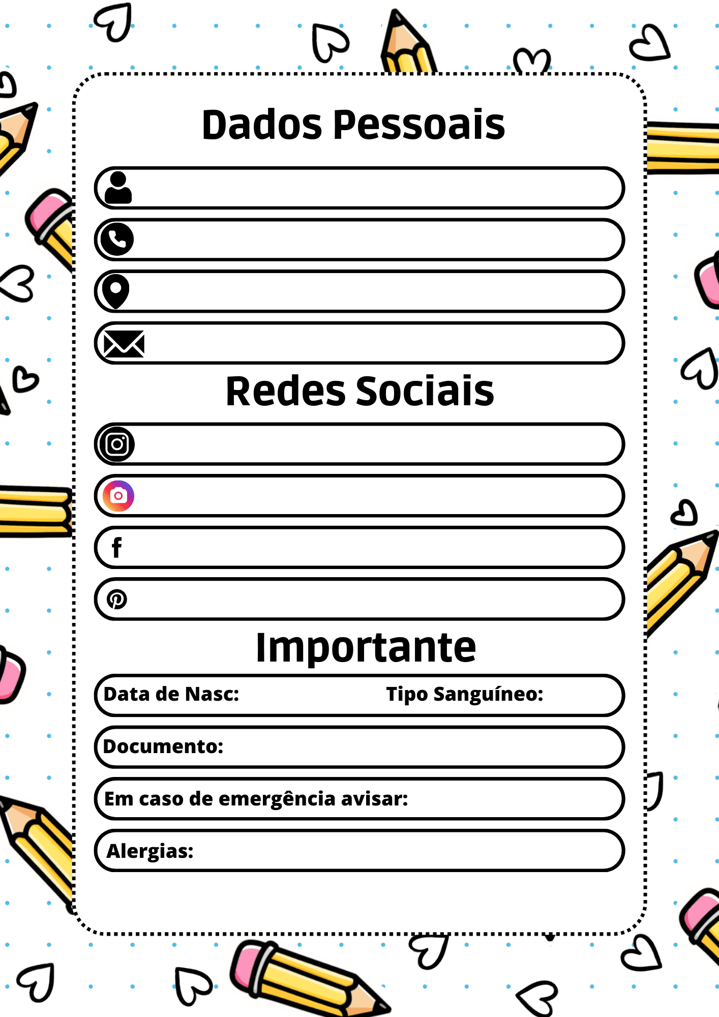 ✔️ Folhas de dados pessoais e dados escolares