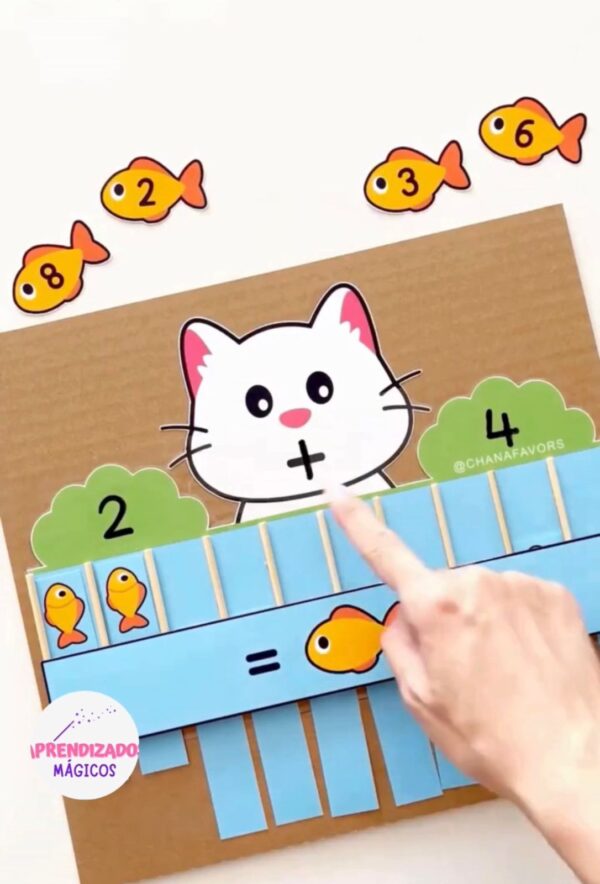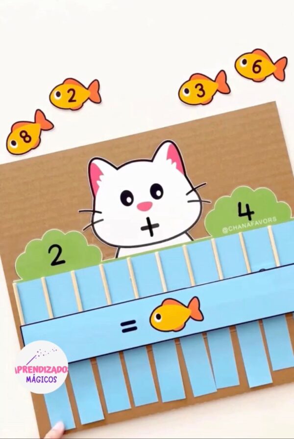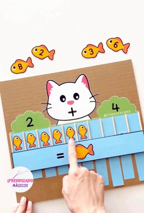 Neste material lúdico e encantador, as crianças aprendem adição e subtração de forma leve e envolvente, ajudando os gatinhos a encontrarem seus peixinhos.