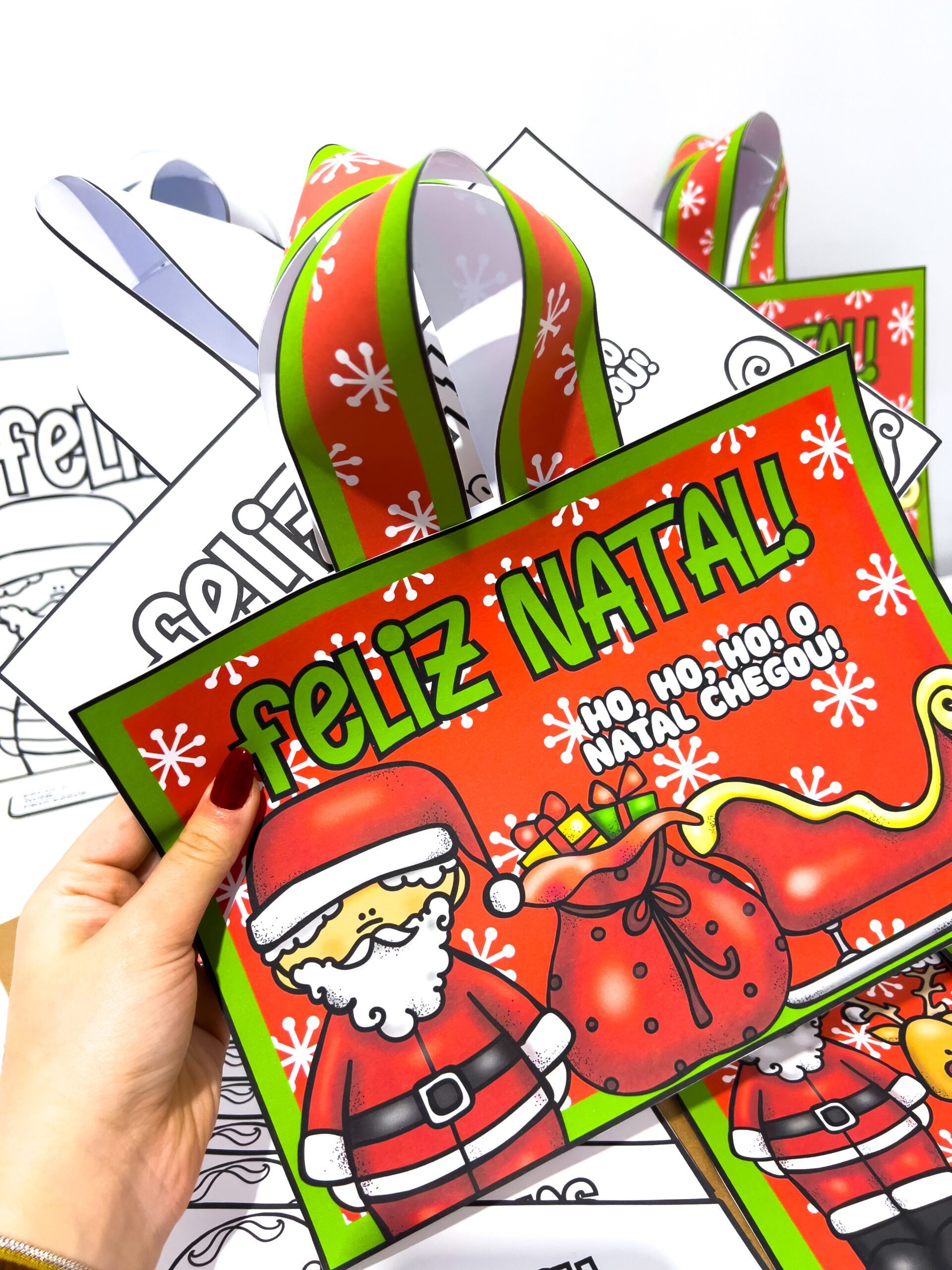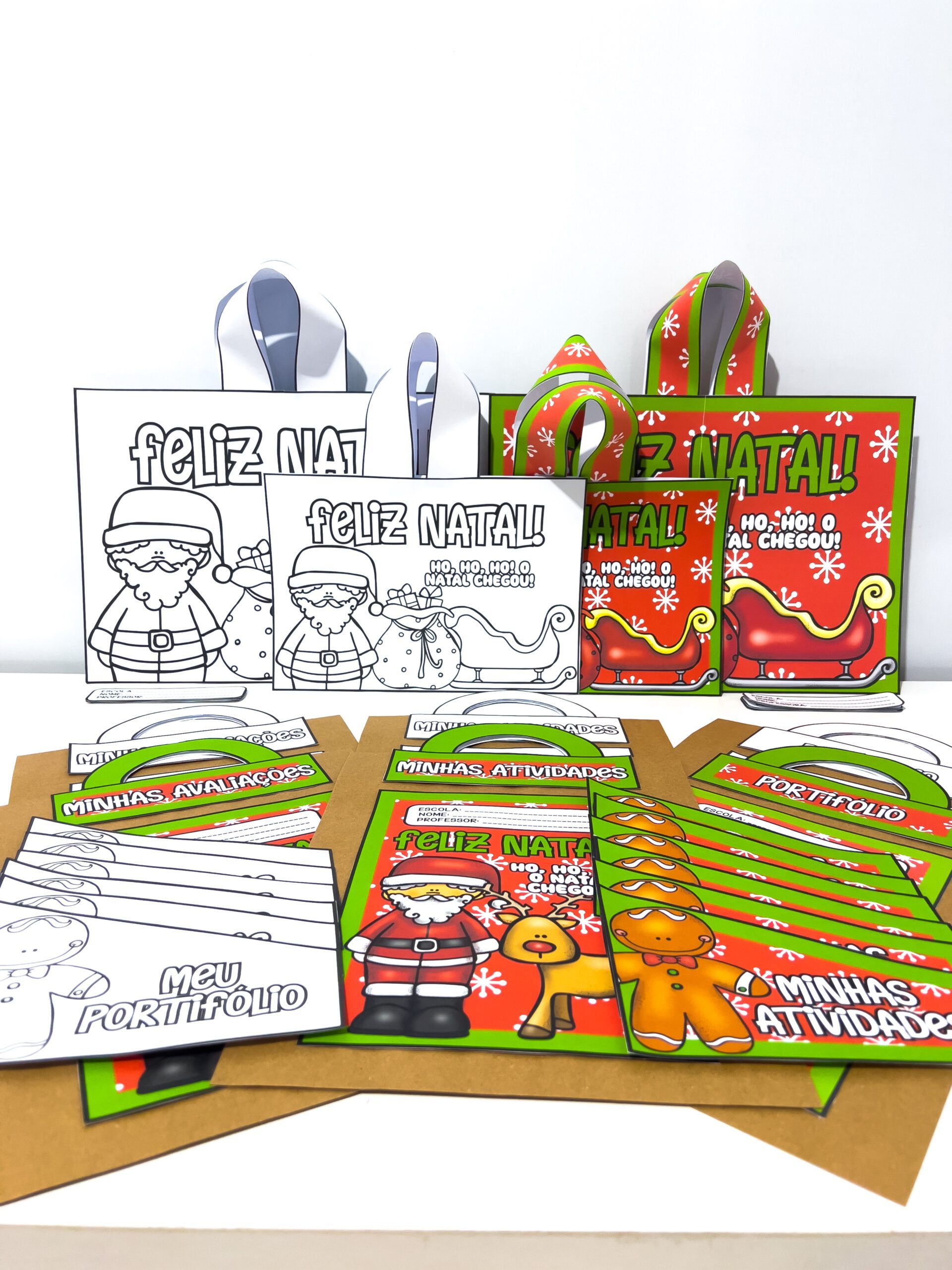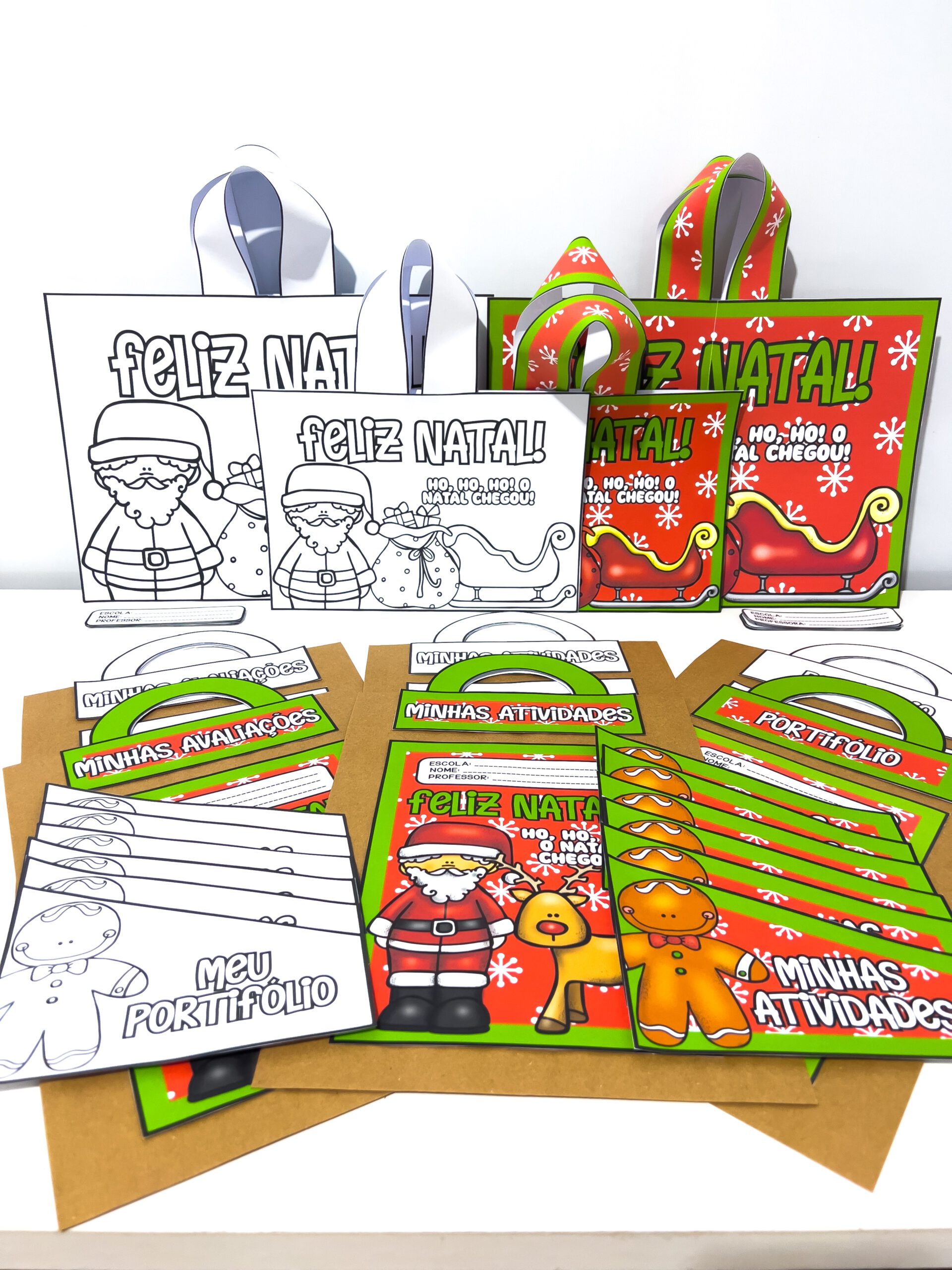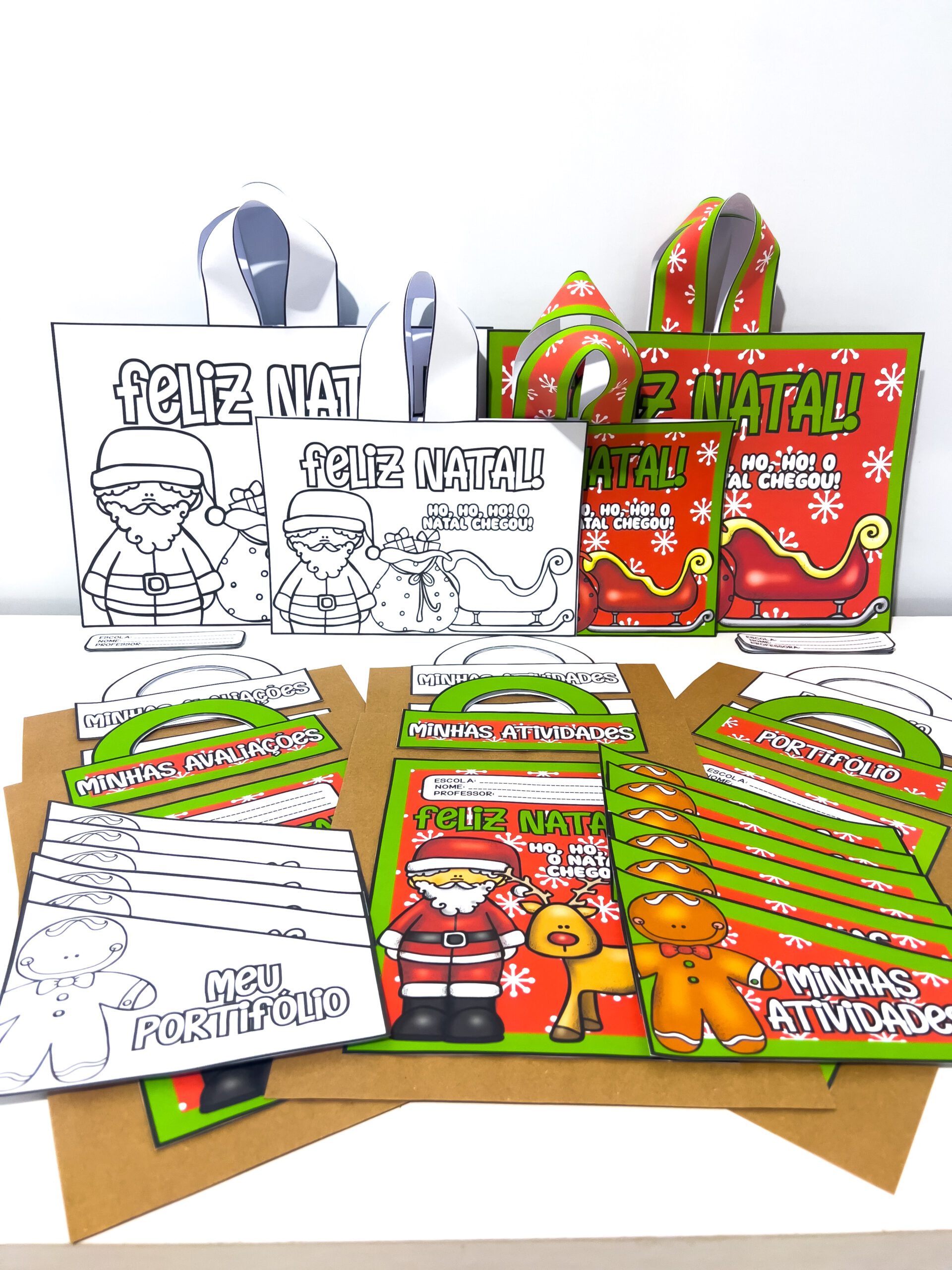 O Kit Capas e Sacolas de Natal para Imprimir – Coloridas e Para Colorir é um material pedagógico encantador e versátil, ideal para organizar, decorar e valorizar as produções escolares no fim do ano letivo.