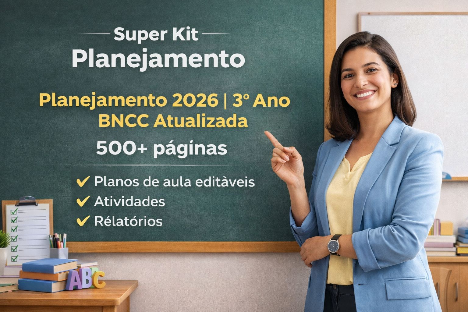 O Super Kit Planejamento 3º Ano 2026 foi desenvolvido para professores que desejam segurança pedagógica, economia de tempo e planejamento estruturado do 1º ao 4º bimestre.