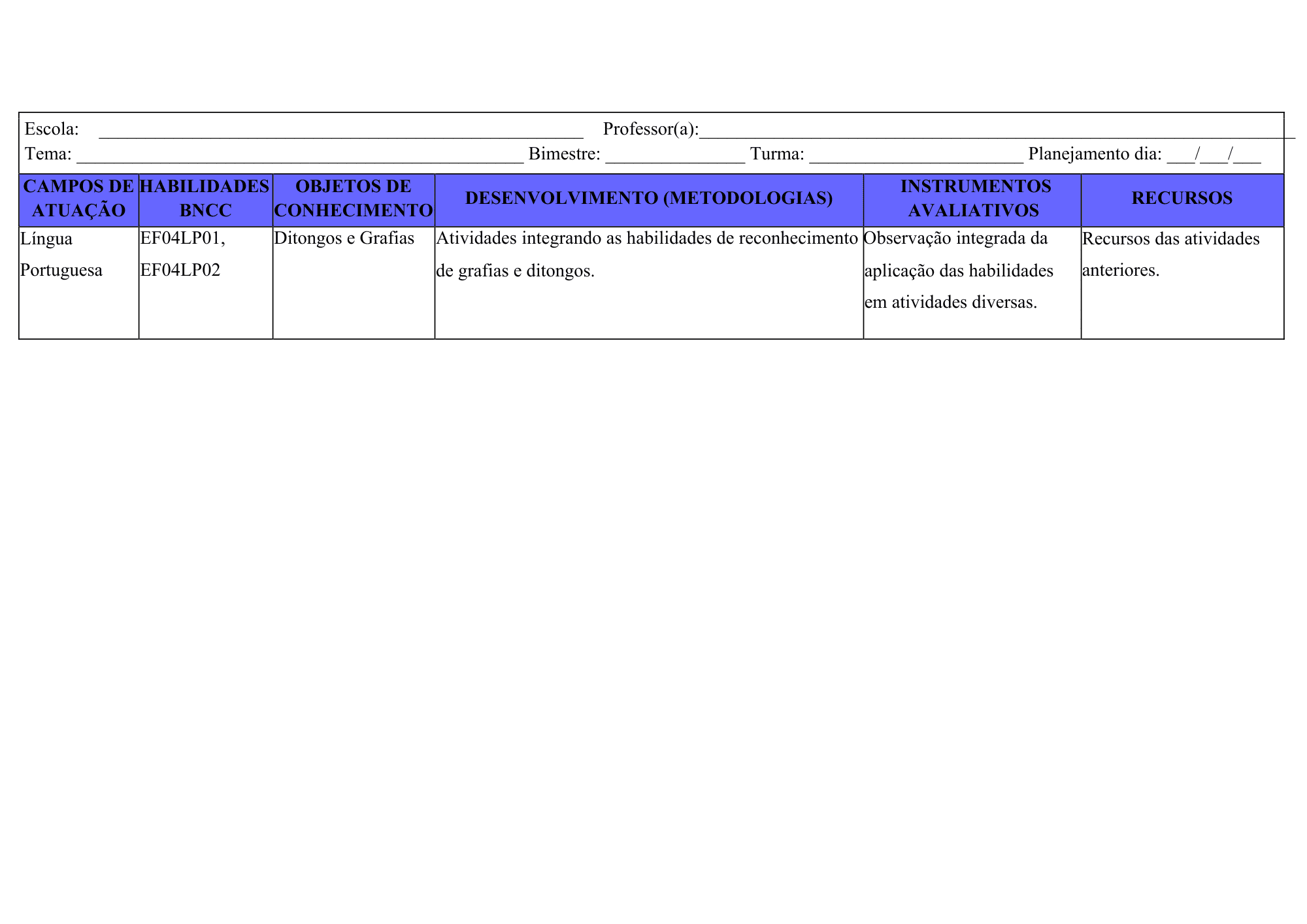 Planejamento Anual 2026 – 4º Ano