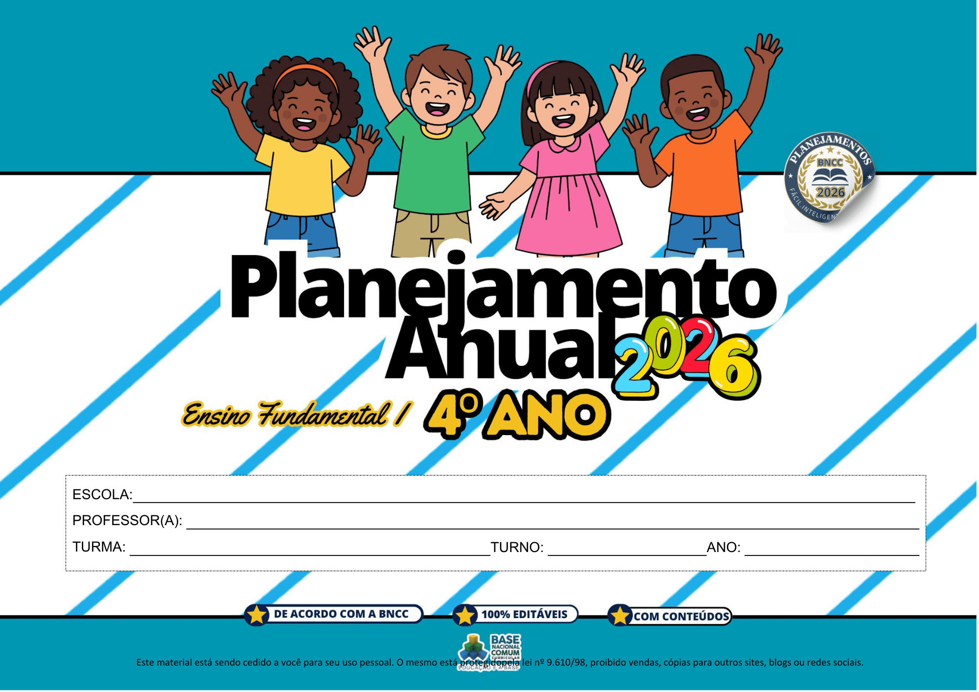 Organize todo o ano letivo do 4º Ano do Ensino Fundamental com um material completo, estruturado e totalmente alinhado à BNCC 2026.