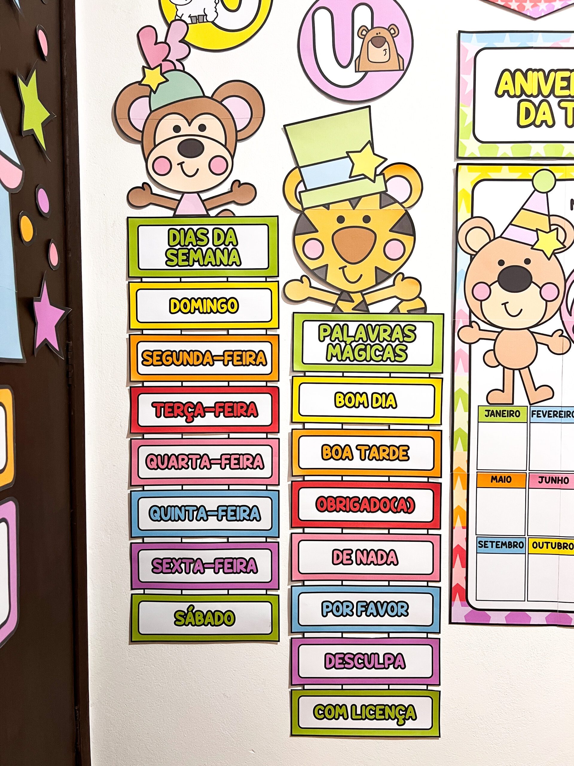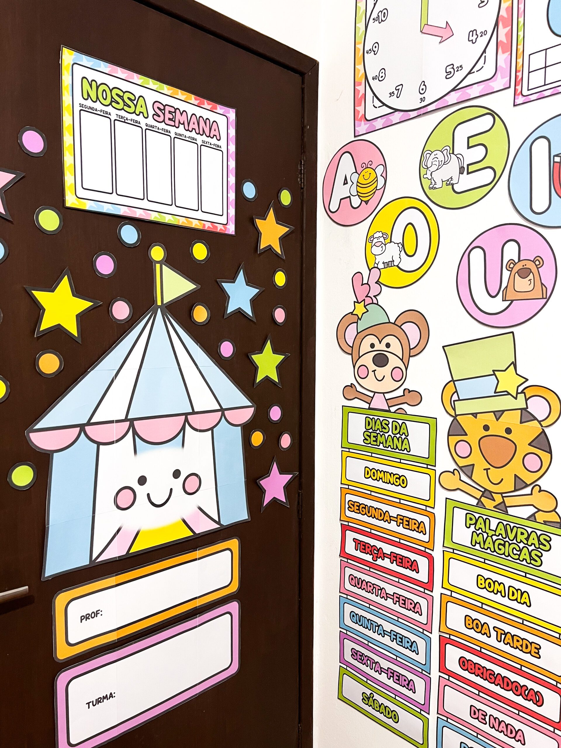 Com um visual encantador e totalmente alinhado ao universo do circo, o kit estimula a curiosidade, favorece a organização da rotina e torna o espaço escolar muito mais convidativo para as crianças. Cada detalhe foi pensado para unir decoração, funcionalidade e aprendizagem, criando uma verdadeira experiência de espetáculo todos os dias.
