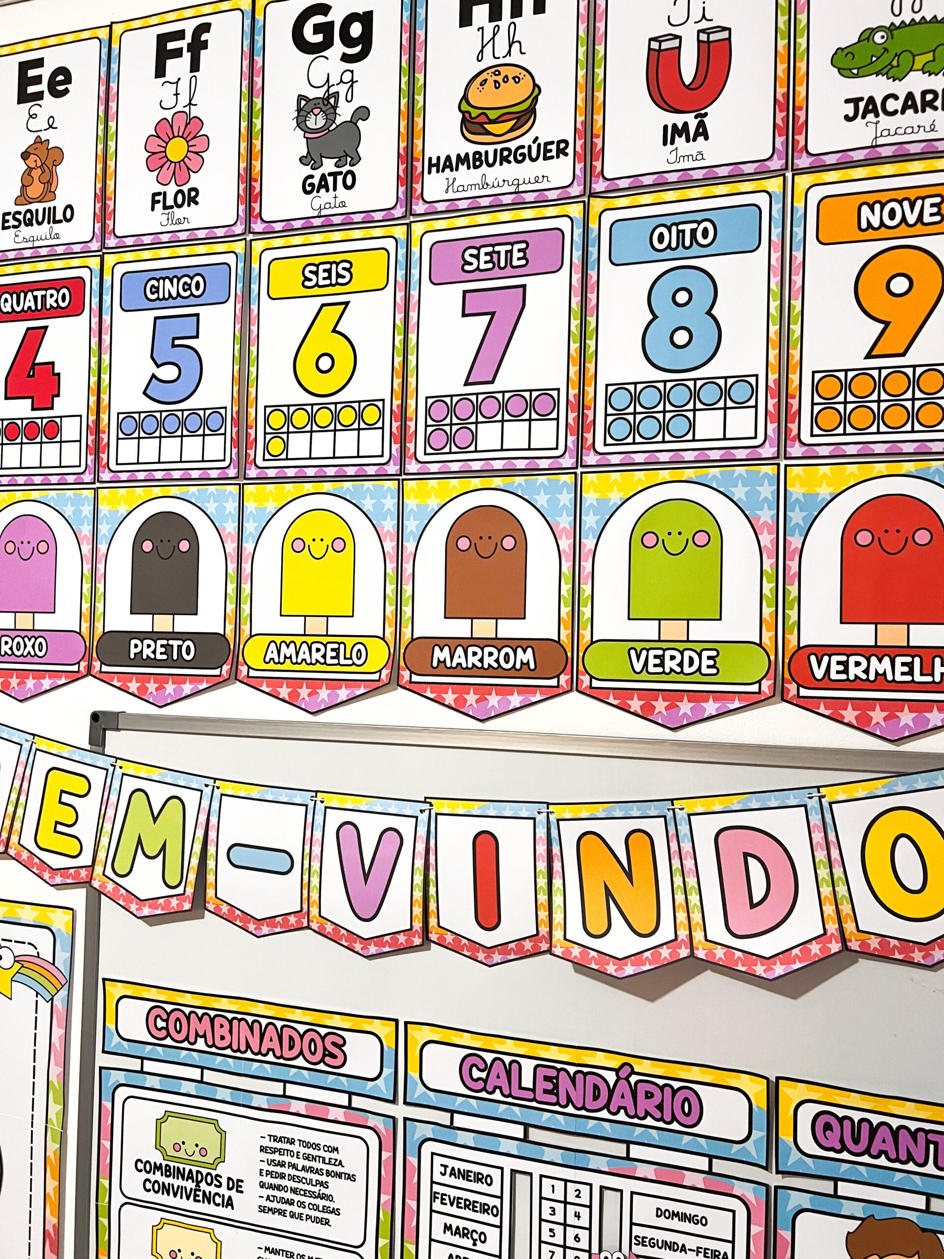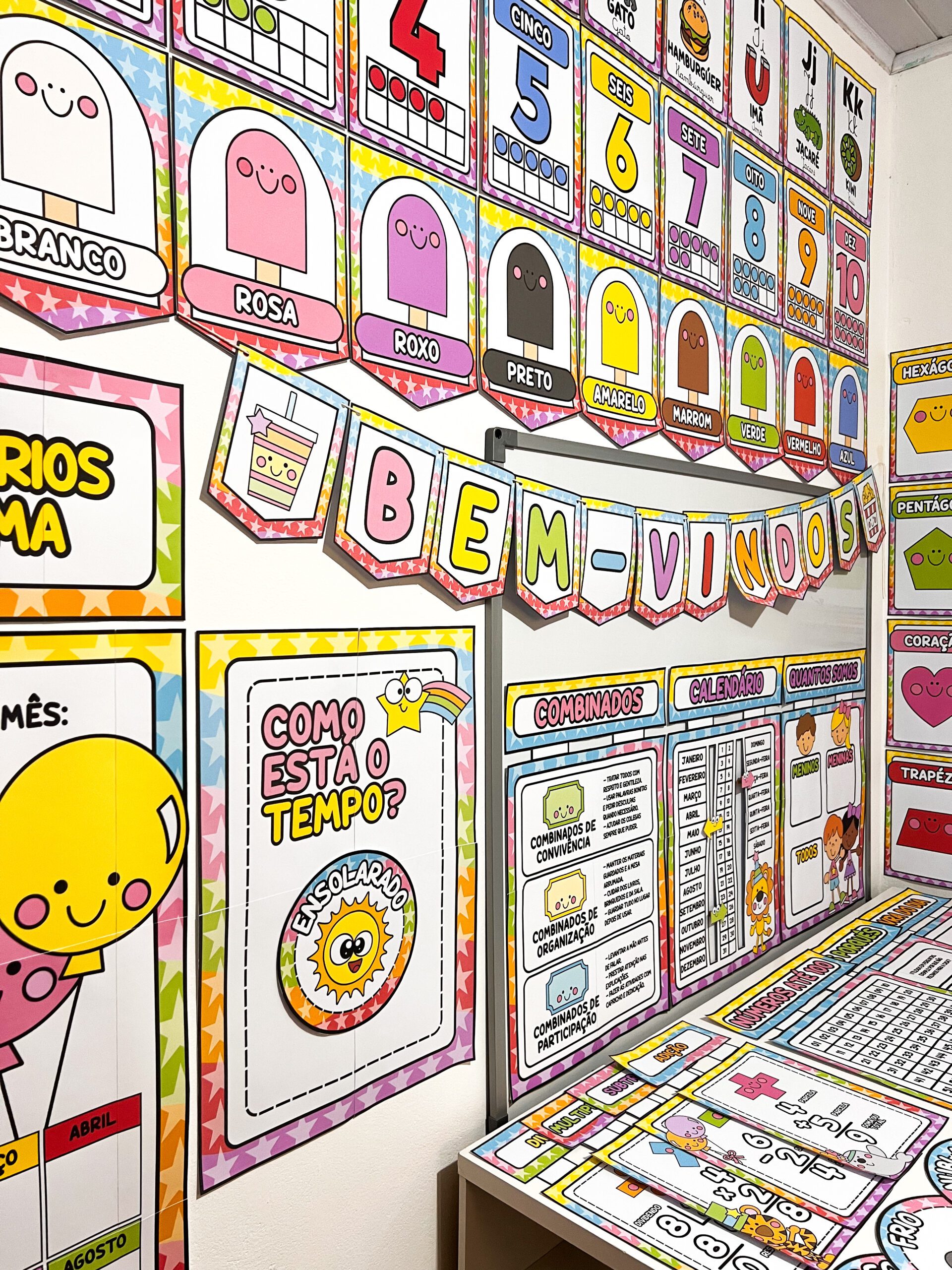 Ideal para Educação Infantil e Anos Iniciais do Ensino Fundamental, o kit é completo e pronto para imprimir e aplicar imediatamente na sua sala.