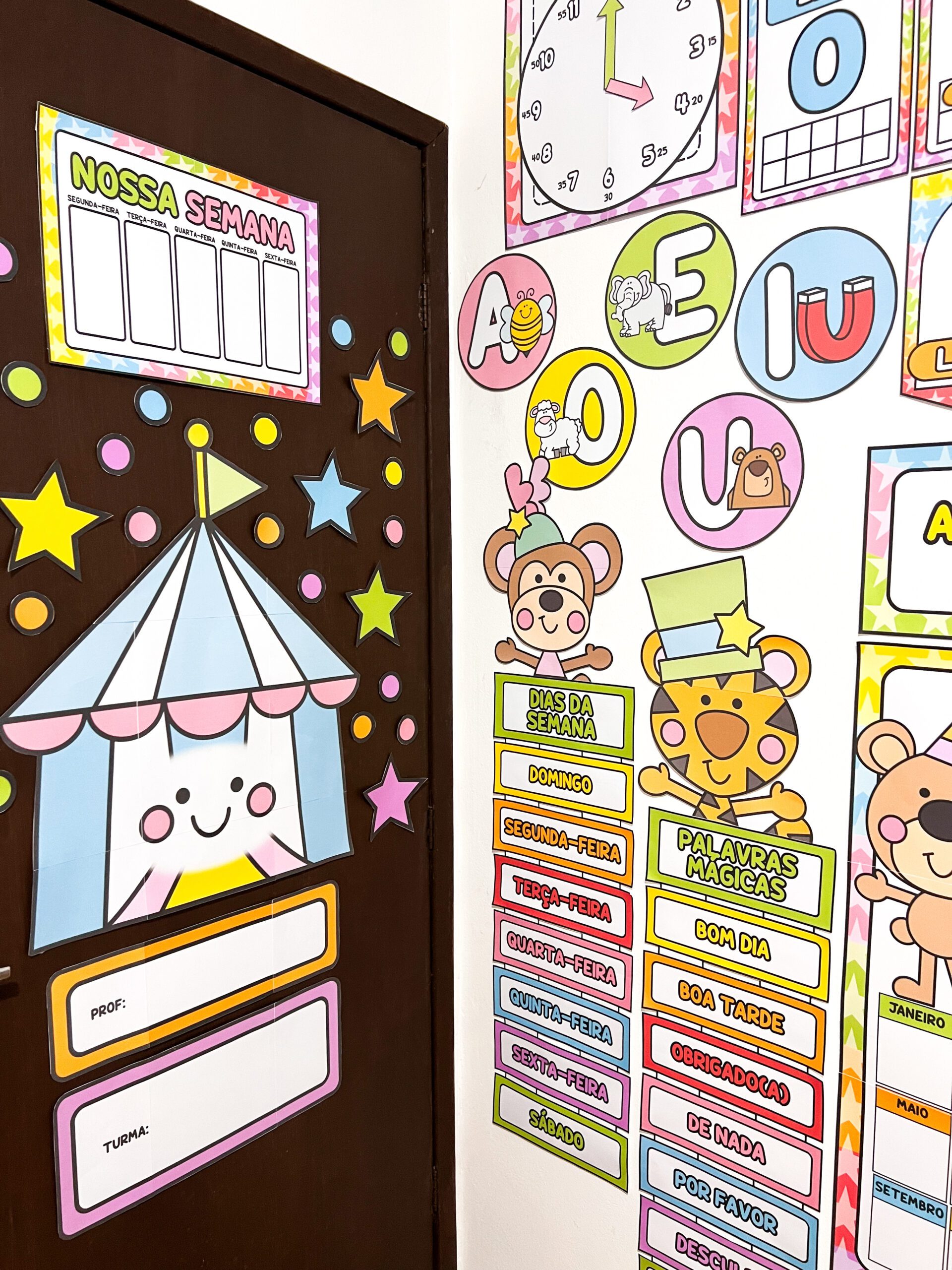 O Kit Ornamentação de Sala Circo da Alegria – Decoração Pedagógica Completa para Sala de Aula foi criado para transformar a sala de aula em um ambiente vibrante, acolhedor, organizado e cheio de ludicidade, inspirando os alunos desde o primeiro dia de aula.