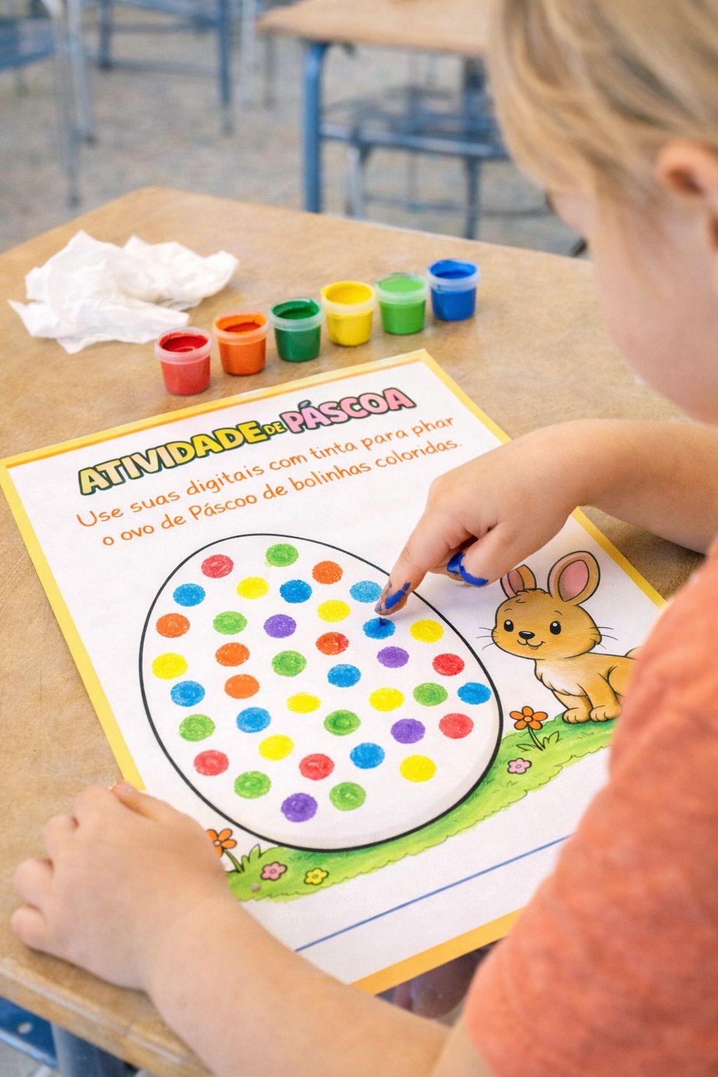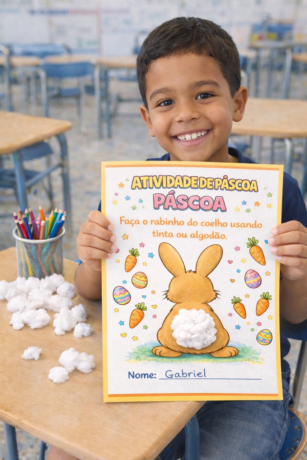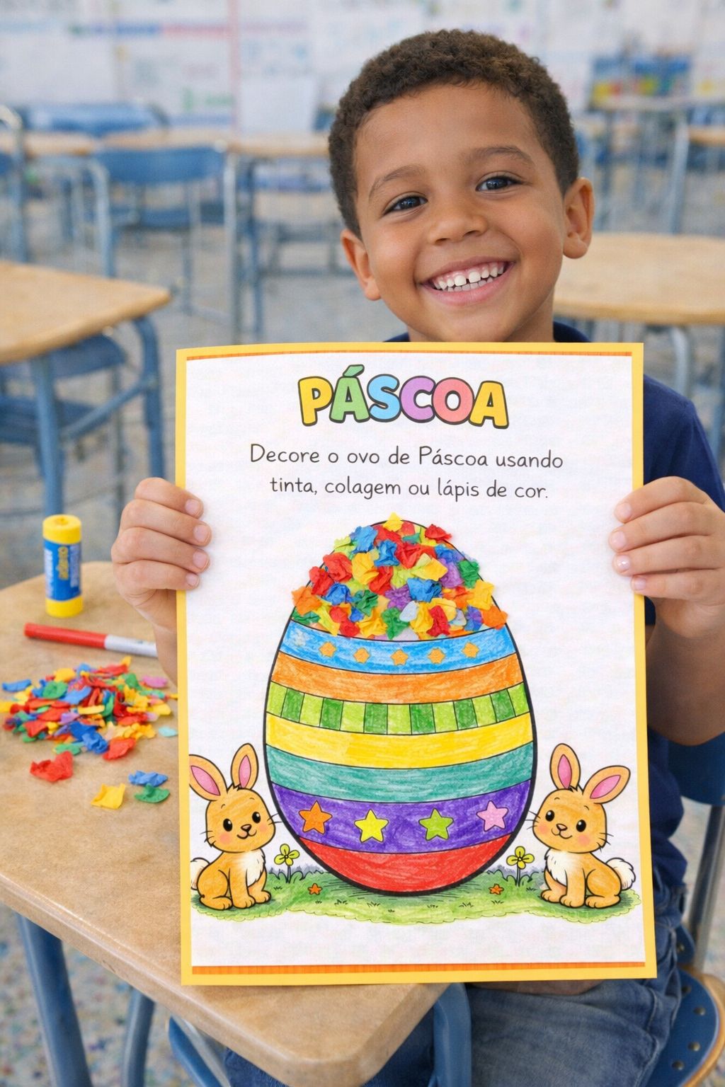 O kit reúne atividades lúdicas que permitem explorar diferentes formas de aprendizagem, como pintura, colagem, uso de tinta, coordenação motora e atividades sensoriais, tornando o trabalho com o tema da Páscoa mais divertido e significativo em sala de aula.