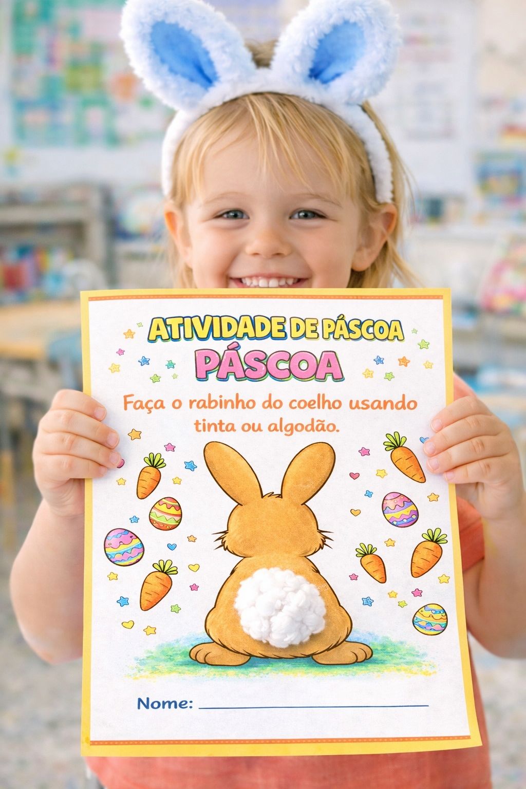 Material pedagógico com atividades temáticas de Páscoa desenvolvido para trabalhar criatividade, coordenação motora e expressão artística com crianças da Educação Infantil e dos Anos Iniciais do Ensino Fundamental.