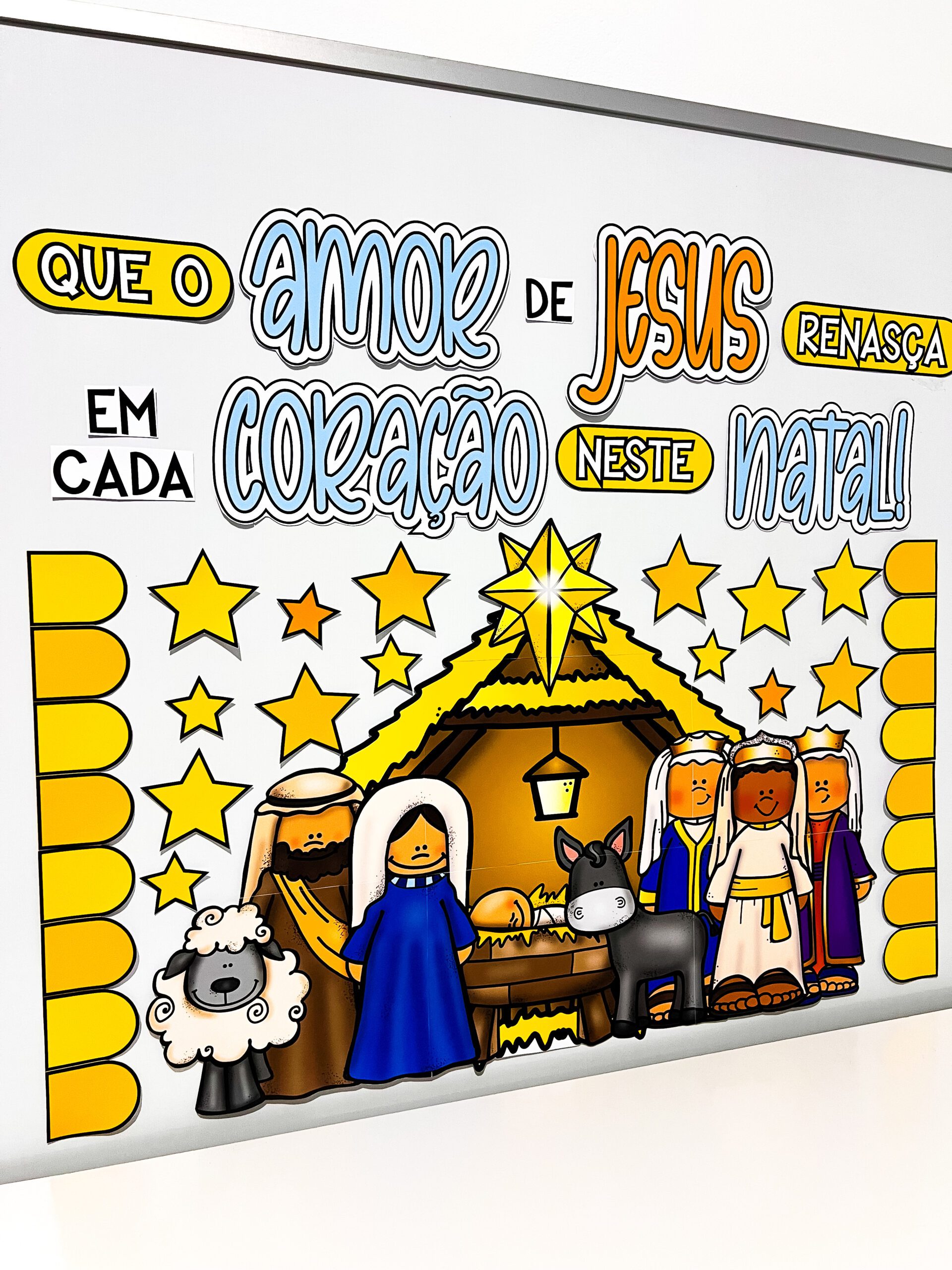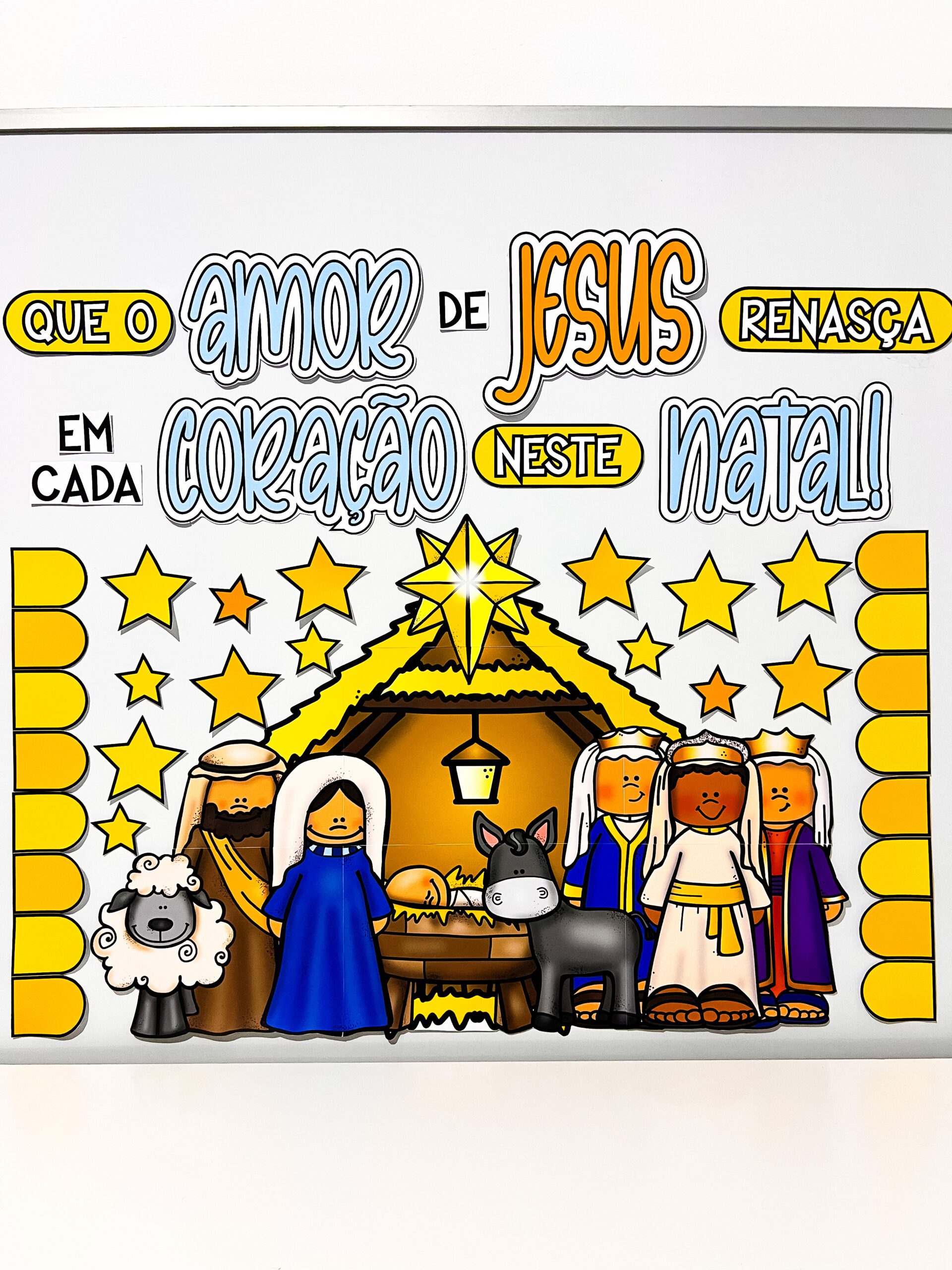 O Painel Natalino Cristão para Imprimir – Presépio com Mensagem de Fé é um material especial desenvolvido para decorar salas de aula, murais, igrejas e ambientes escolares, promovendo o verdadeiro significado do Natal com beleza, espiritualidade e emoção.