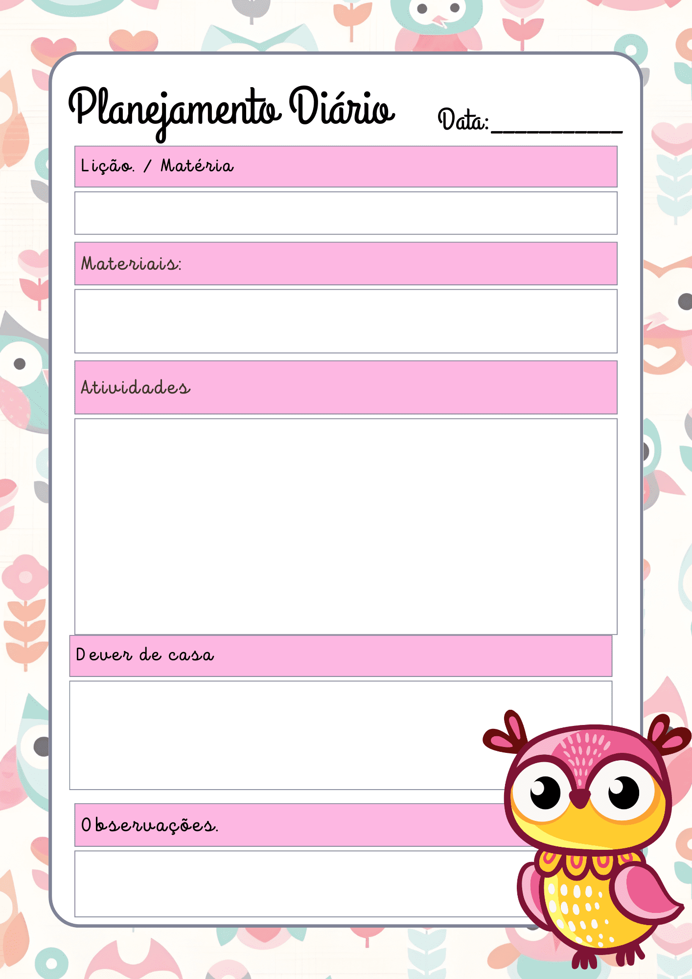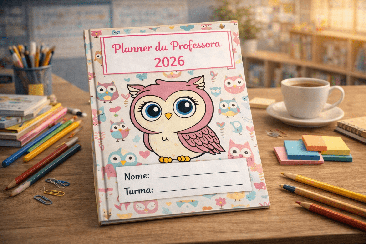 O Planner da Professora 2026 Coruja foi desenvolvido para auxiliar professoras da Educação Infantil e do Ensino Fundamental a organizarem toda a rotina pedagógica de forma prática, funcional e visualmente encantadora.