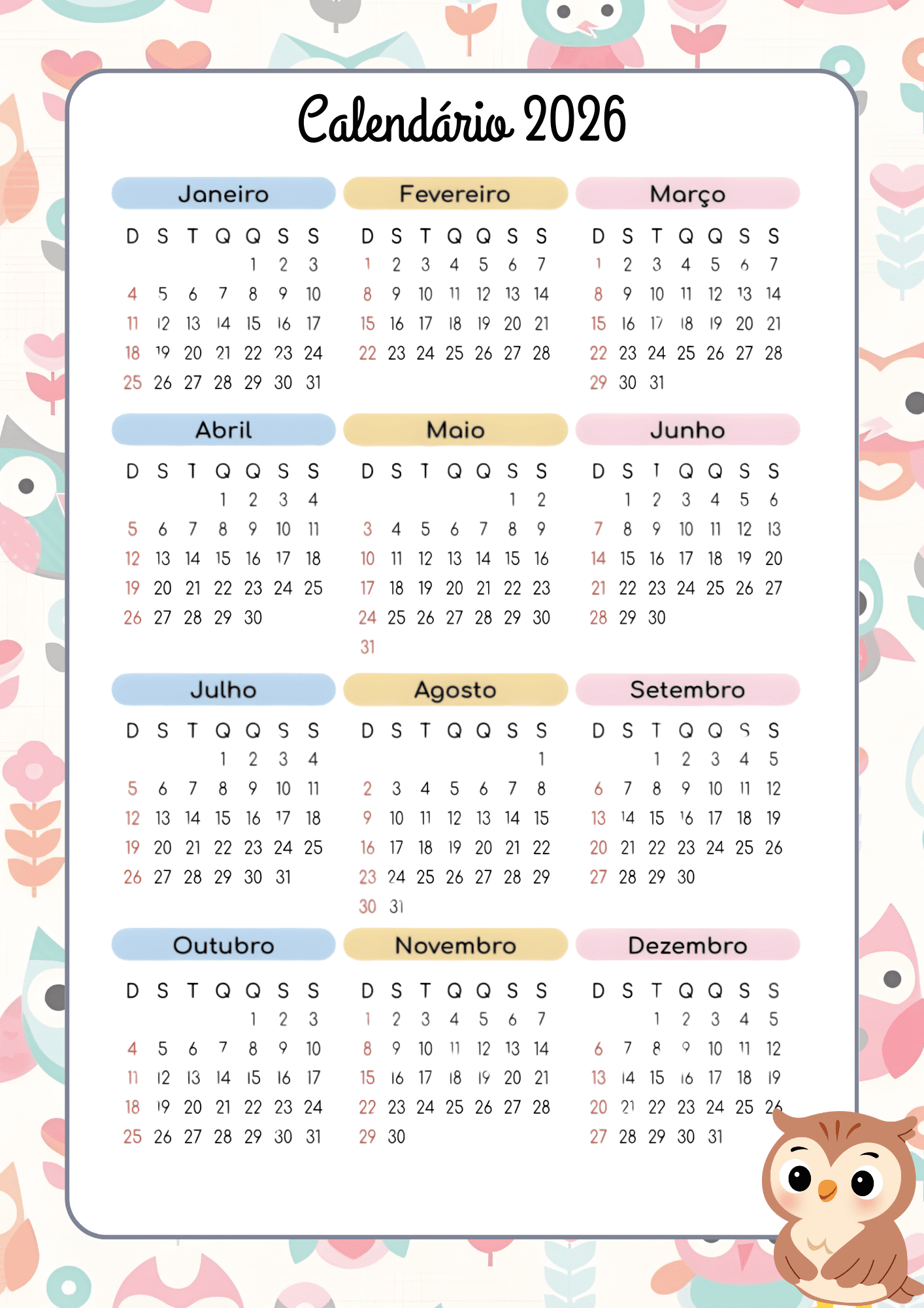Calendário completo 2026