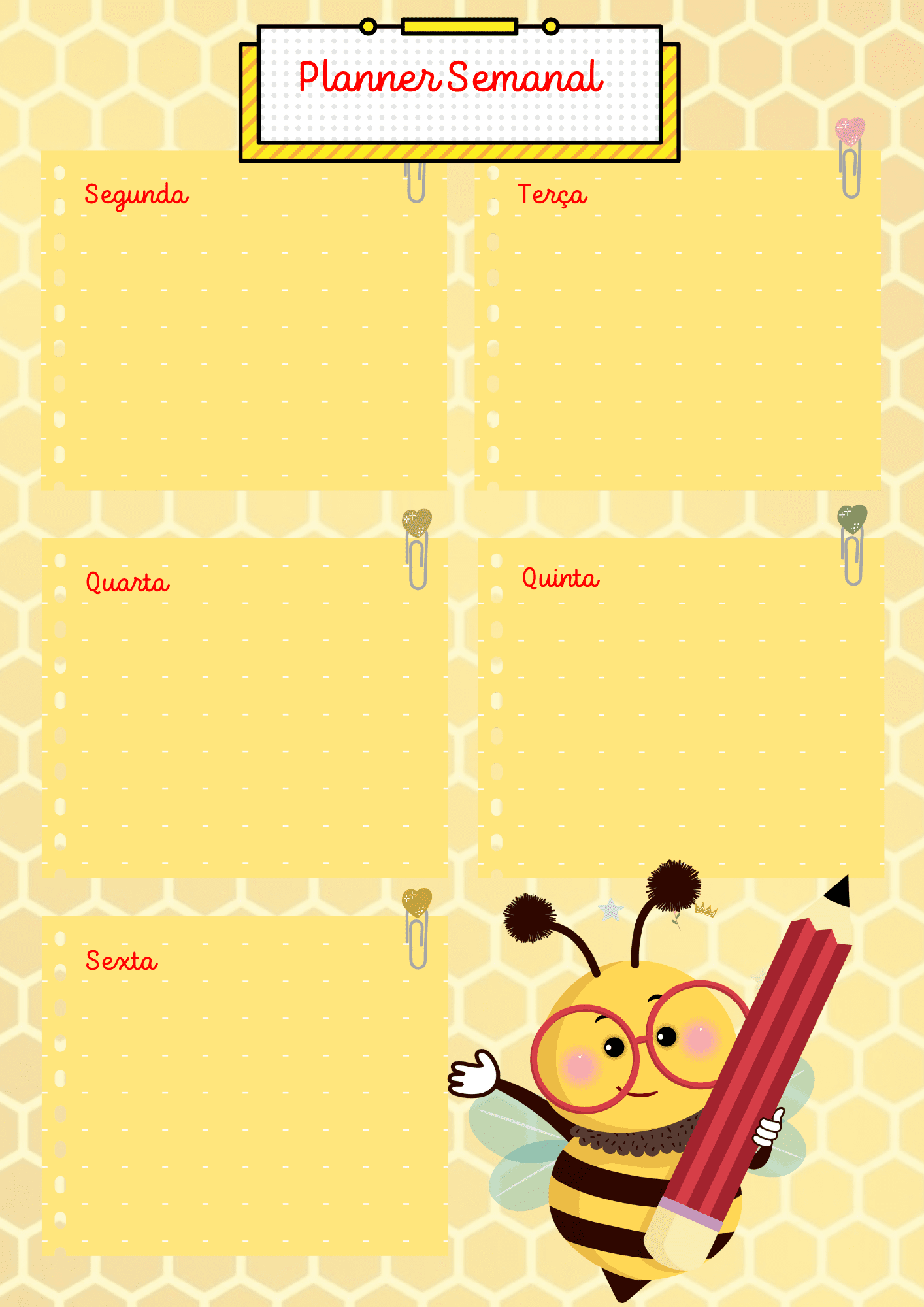 Com um design lúdico e acolhedor no tema abelha, o planner une beleza, praticidade e organização, tornando o planejamento pedagógico mais leve, eficiente e visualmente agradável. Ideal para professoras que desejam otimizar tempo, manter registros organizados e acompanhar o desenvolvimento da turma com clareza.