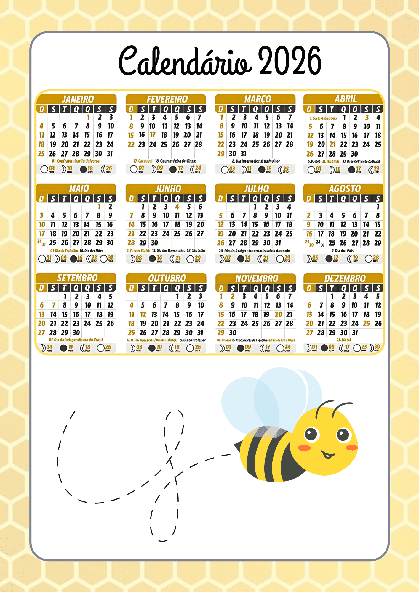O Planner da Professora 2026 – Tema Abelha é um material pedagógico completo, funcional e encantador, desenvolvido para auxiliar professores da Educação Infantil e Ensino Fundamental na organização da rotina escolar ao longo de todo o ano letivo de 2026.