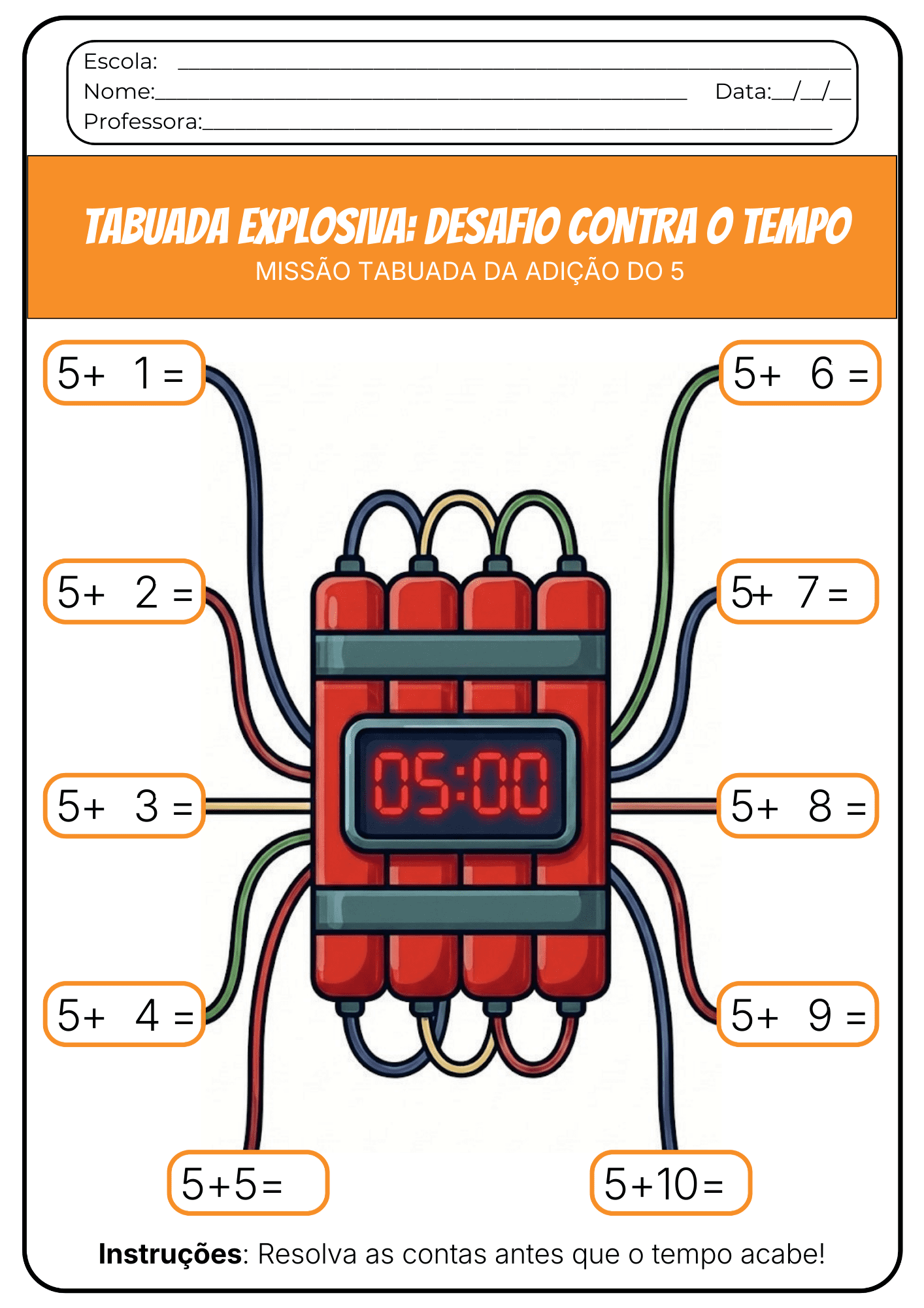 A Tabuada Explosiva é um recurso prático para trabalhar operações matemáticas de forma estruturada, incentivando o aluno a desenvolver segurança e rapidez no cálculo.